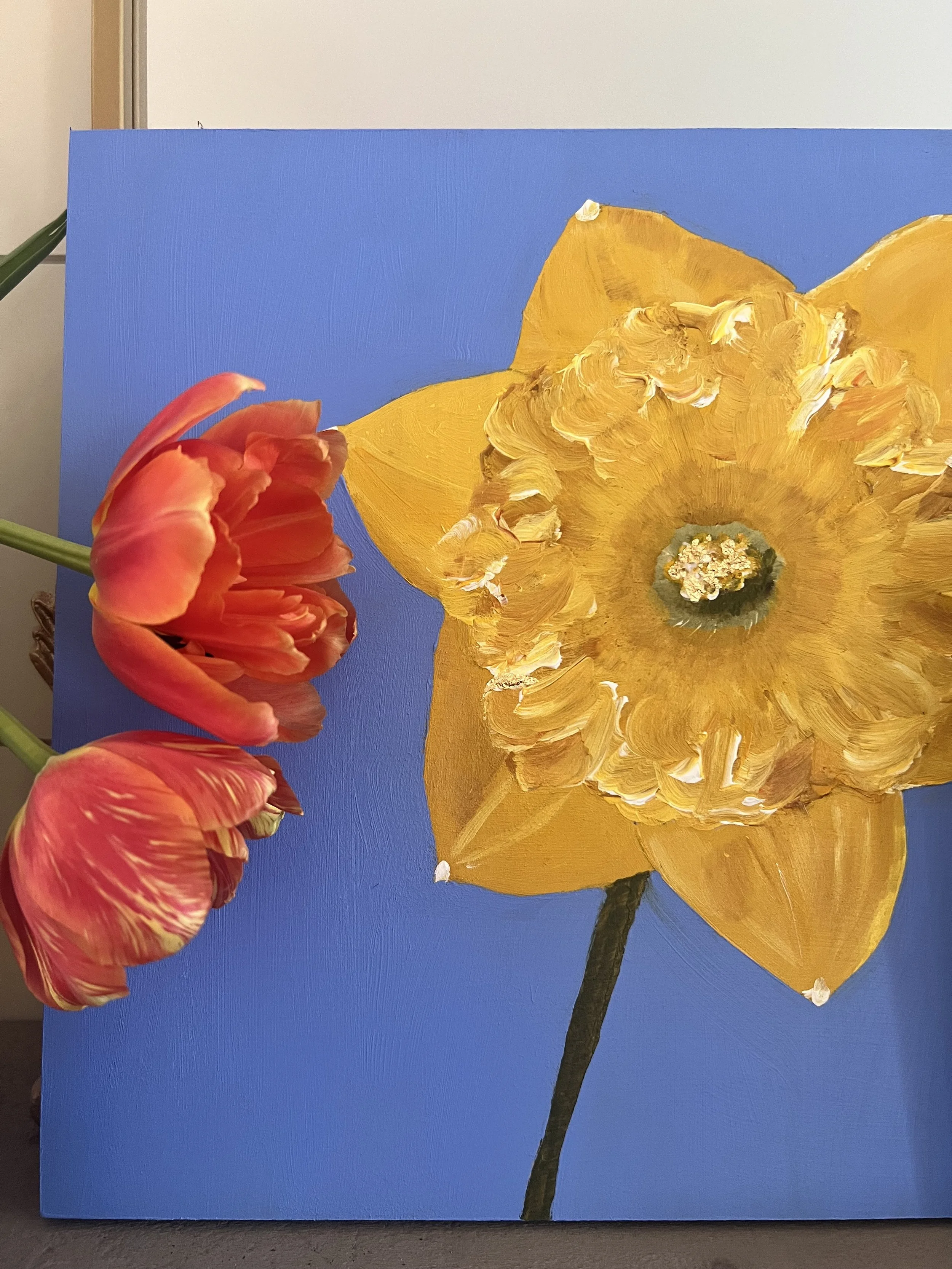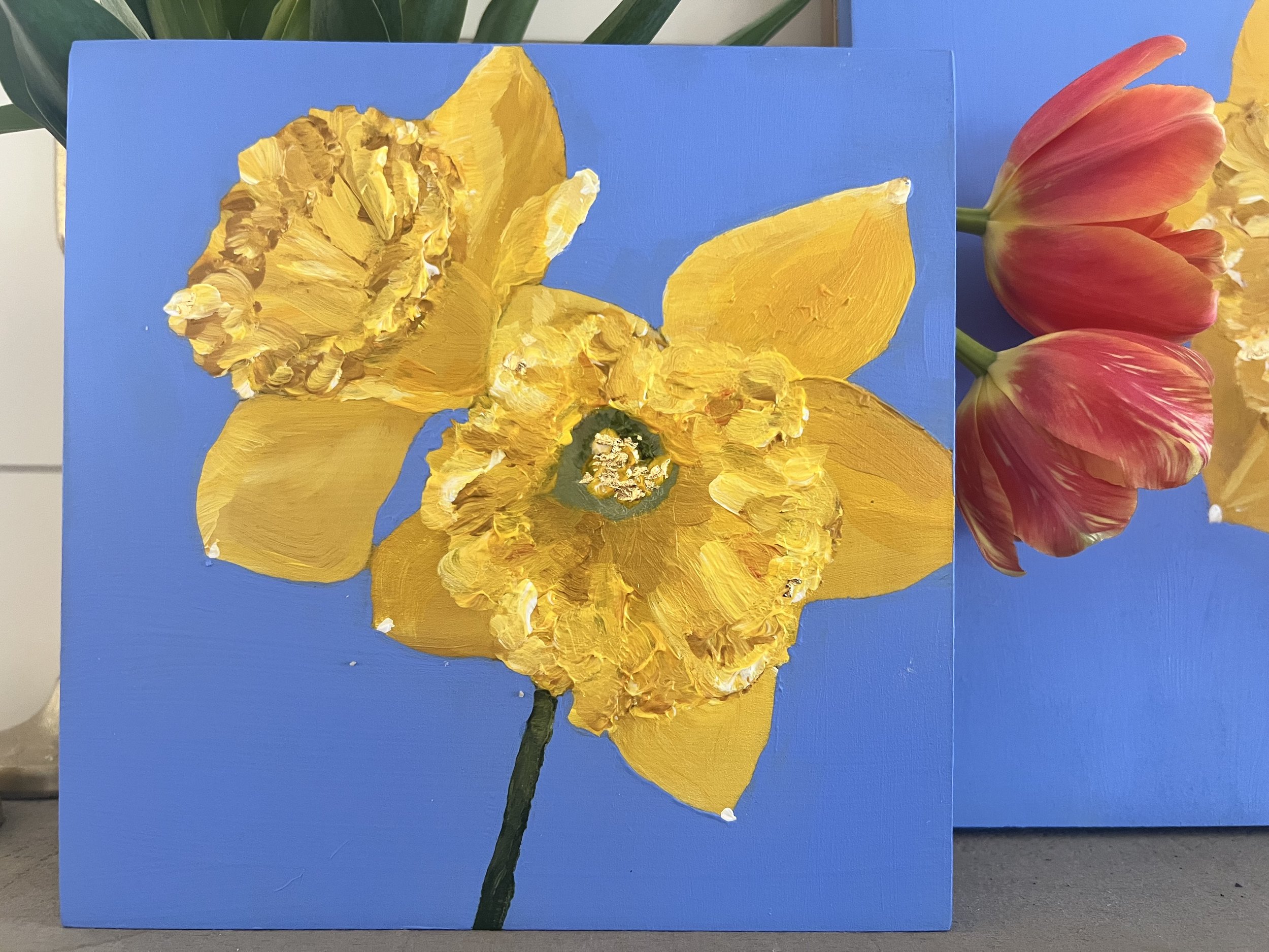 The bright gold may not stay, but those daffodils remind us to appreciate the changing of seasons and the brevity of that moment. I hope you love this series of bright, beautiful flowers as much as I do. They were a joy to paint, and something tells me they will be a joy to hang up on your wall and see daily. Each painting is painted on cradled wood panels that are ready to hang and do not require framing. The price includes shipping. Which one will you get?